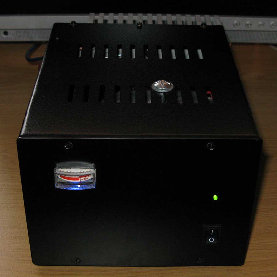 6) Наличие мощного ШПУ в СДРе предполагает и наличие прибора на передней панели, который бы показывал степень согласования ШПУ-ANT. Помимо стрелочного прибора введены и два достаточно ярких светодиода, которые одновременно показываю "прямую и обратную волну". Т.е. не нужно постоянно заглядывать на стрелку прибора при работе. Достаточно хорошо видно и боковым зрением как моргает зелёный светодиод в такт вашему сигналу на ТХ и в случае аварии начнёт ярко вспыхивать красный светодиод.