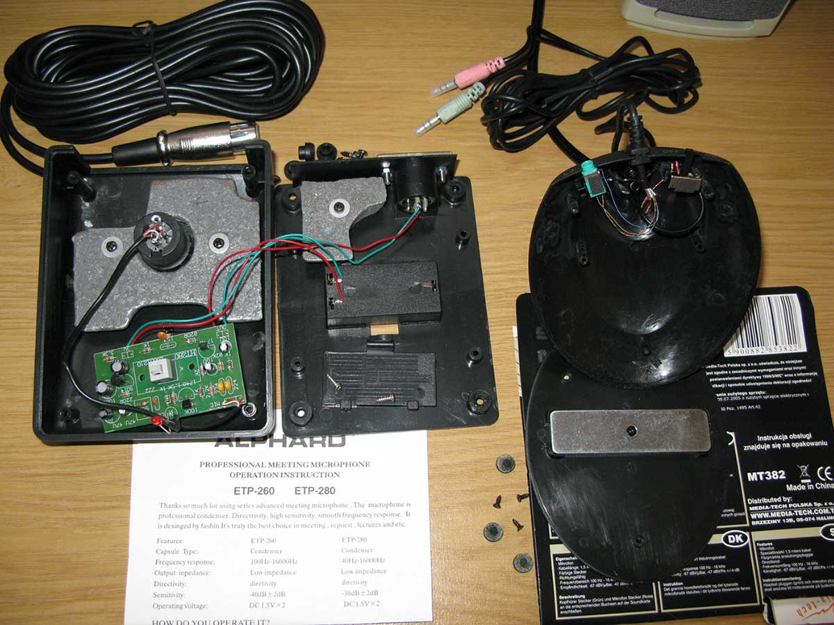 Немного "поигрался" с микрофонами. Что и "требовалось доказать" - дешевая версия по качеству работы ненамного уступает дорогой. Отличие в худшего качества шнурках (фон), задувание воздуха слышно (нет поролона на микрофоне) и немного более высокочастотный сигнал выдаёт. Т.е. для "экономной публики" вполне достойный микрофончик, но придётся прикладывать руки - менять шнурки и поролончик какой-то подходящий искать. Т.к. микрофон не разборный (клееный корпус) в случае неисправности придётся выкинуть, хотя подставка с держателем вполне достойного качества.