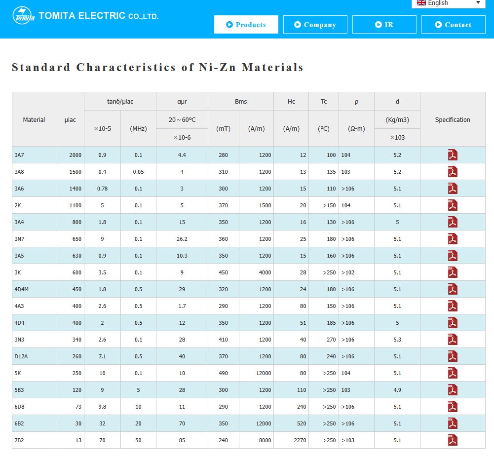 https://www.tomita-electric.com/en/material/std-ni/феррит 43 от Fair-Rate =>