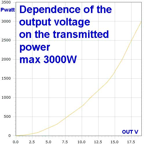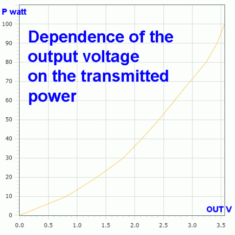 В табличках - зависимость выходного напряжения от проходящей мощности.
