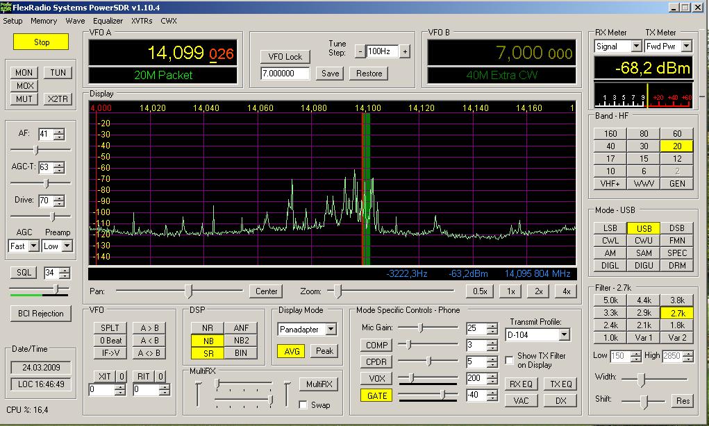 Есть небольшой вопрос, не уверен что он связан с освоением СДР, поэтому спрошу письмом. Собственно что интересует -случайно обратил внимание на то что на самом широком спектре при частоте дискретизации зв. карты 192кгц в PowerSDR в панораме идут очень ощутимые завалы по краям –децибел до 20.. причем что обидно не у самого края а плавно начинаясь практически из центра. Особенно заметно это на водопаде, на котором более-менее видны слабые станции.. а как раз водопад очень чувствителен к уровню сигнала. Результат смотрите на картинке -1- с письмом. Естественно я подумал что таково АЧХ зв. карты итд.. но пообщался с человеком у которого такая же точно зв. карта и выяснил что дело врядли в звуковухе –спектры собственных шумов чуть ли не копии.. а вот спектр в водопаде совсем другой, смотрите картинку -2- с письмом, -спектр намного равномернее и водопад соответственно рисует нормально. Из всего этого сделал вывод что дело в железке, т.е. в СДРе. Скажите на ваш взгляд действительно виноват СДР и можно ли это как то победить? Или проще плюнуть и не парится..?