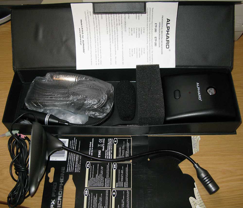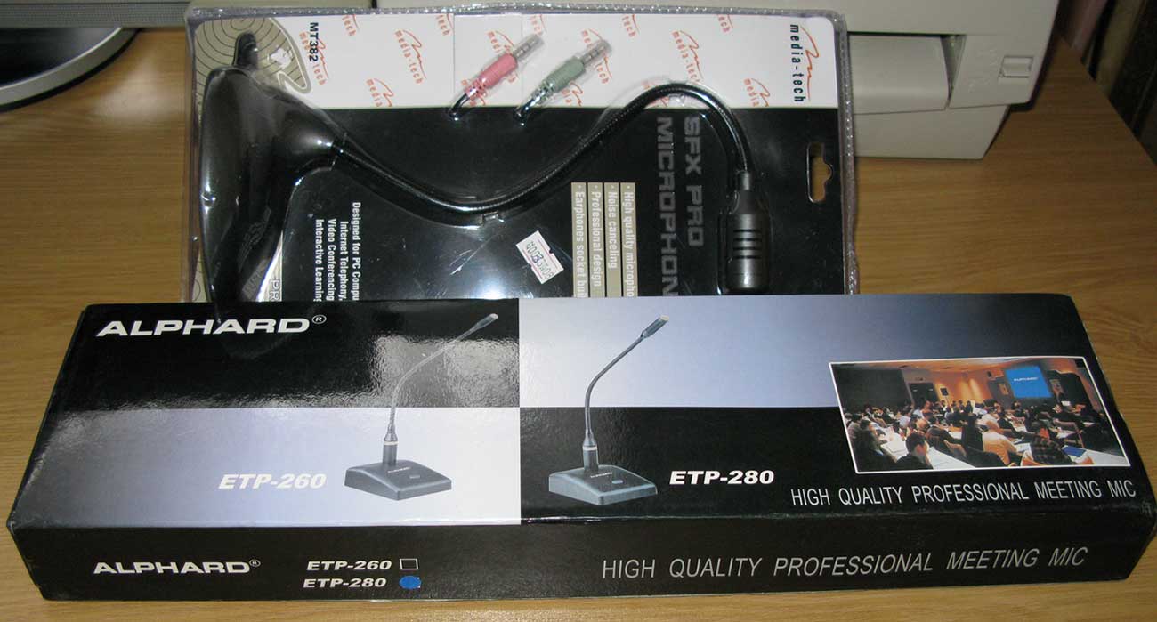 Немного "поигрался" с микрофонами. Что и "требовалось доказать" - дешевая версия по качеству работы ненамного уступает дорогой. Отличие в худшего качества шнурках (фон), задувание воздуха слышно (нет поролона на микрофоне) и немного более высокочастотный сигнал выдаёт. Т.е. для "экономной публики" вполне достойный микрофончик, но придётся прикладывать руки - менять шнурки и поролончик какой-то подходящий искать. Т.к. микрофон не разборный (клееный корпус) в случае неисправности придётся выкинуть, хотя подставка с держателем вполне достойного качества.