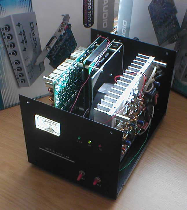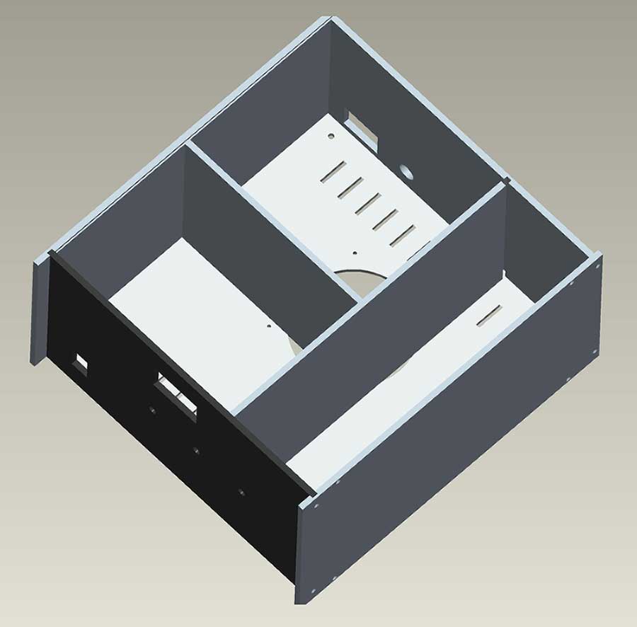 Считаю наиболее правильным расположение плат СДРа в версии DN-100, т.к. в нём платы установлены вертикально. Т.е. за счёт естественной конвекции воздуха снизу-вверх, происходит оптимальное охлаждение. Стабилизаторы прикручены к перегородке через теплопроводящую пасту. И со стороны ШПУ эта перегородка охлаждается воздухом от вентилятора, который обдувает радиатор ШПУ. Ширина отсека под сам СДР 60мм.