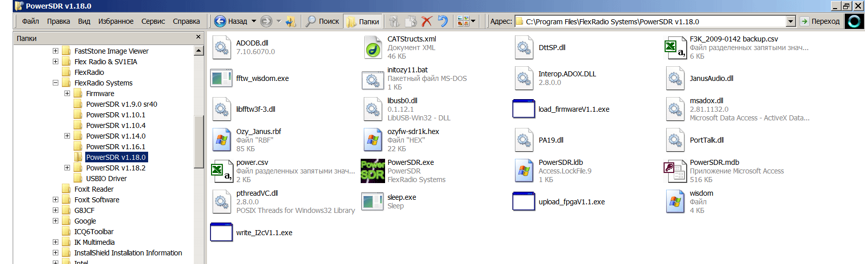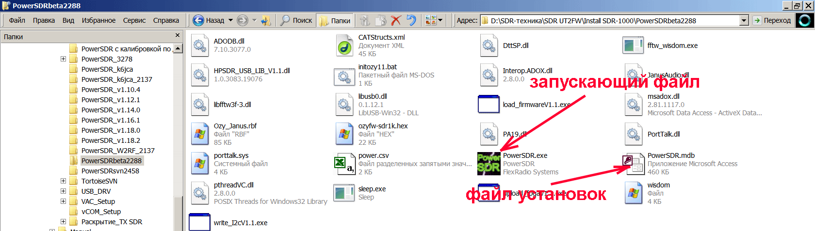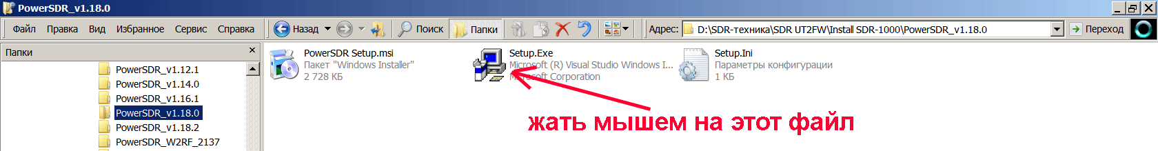 Существуют программы, которые не нужно устанавливать - это те, которые в папках выглядят как набор различных файлов. Ниже картинка "_без установки". Как правило это тестируемые версии PowerSDR, так называемые "бетты". И существуют так называемые "релизы", т.е. версии PowerSDR, которые вычищены от глюков и рекомендованы к применению производителем софта. Их нужно устанавливать как и любую иную программу в компьютер. Выглядят они так - см. ниже картинка "_с установкой".