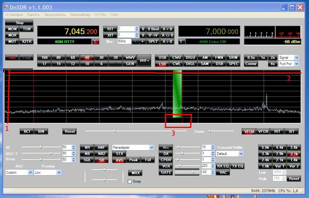 Работа телеграфом в Повер СДР это отдельная тема. Очевидно, что при разработке самой программы, уклон делался на работу телефоном. И замечательная возможность использовать фильтры с любой полосой пропускания, так необходимой для работы в сложных условиях тестов и пайлапов при работе на прием, не очень хорошо отработана при работе аппарата на передачу.