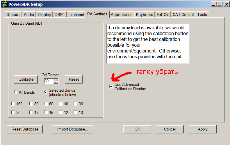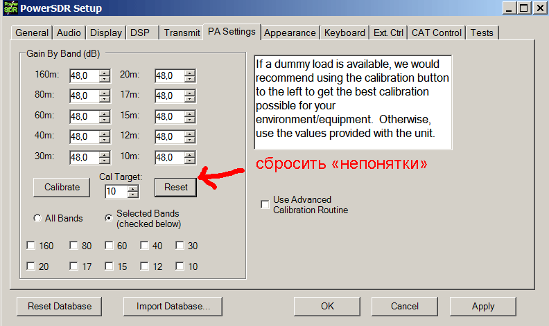 4.Делаем сброс тех "вирусных" установок, которые в вашей версии PowerSDR заставляют ШПУ работать с неравномерностью.