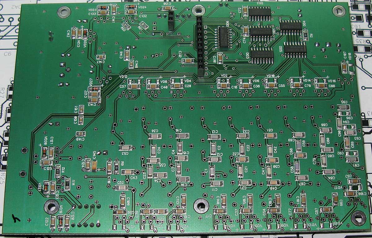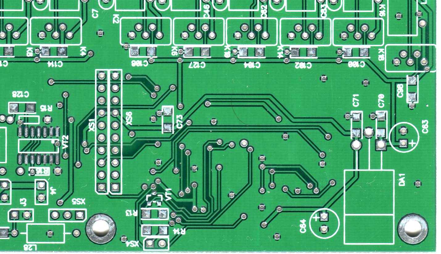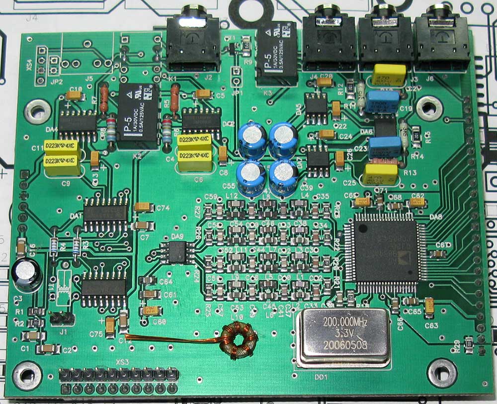 3.Плата ДПФов. Тут больше всего работы. Впаять реле, катушки, трансформаторы. Разъём XS3 и реле К20 по потребности - в DN-100 эти элементы не используются. Трансформаторы намотанные Т1, Т2