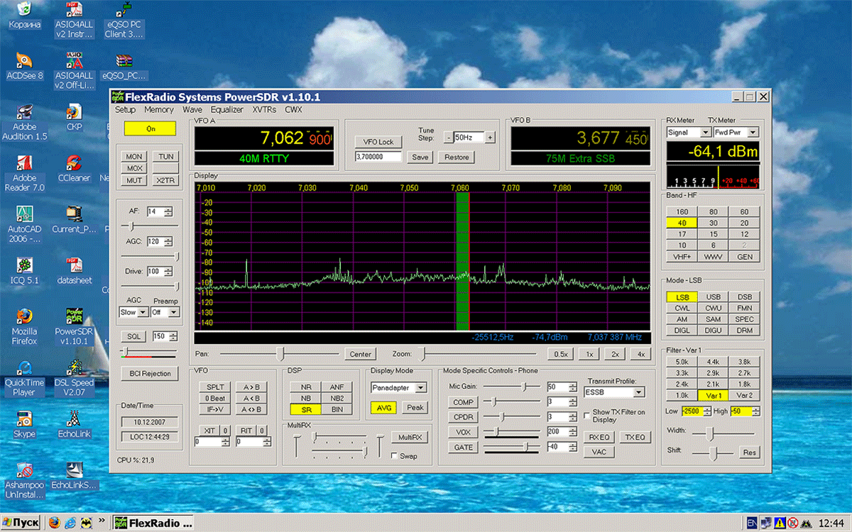 Не нужно забывать, что дядя Саша не является достаточно скрупулезно продвинутым именно по темам пользования как компьютера, так и многочисленных возможностей софта PowerSDR. Уровень «продвинутости» ограничивается тем, которому меня учили в институте. Т.е. решать вопросы по мере их появления, и не тратить время на те, которые могут появиться «теоретически» (а могут и не появиться). Излагаю эти «исходные» лишь для тех, сомневающихся в своей компетентности радистов, которые считают, что в «этой жизни» им уже «никогда» не освоить компьютер и т.д. и т.п. Считаю, что при достаточной настойчивости, уровня грамотного пользователя компьютера сможет достичь любой желающий. Тем более, что у нас не стоит задача освоить скажем фотошоп, или корел, или какой-нибудь автокад. А основная на сегодня наша задача – это настроить Windows для пользования компьютерного трансивера SDR.