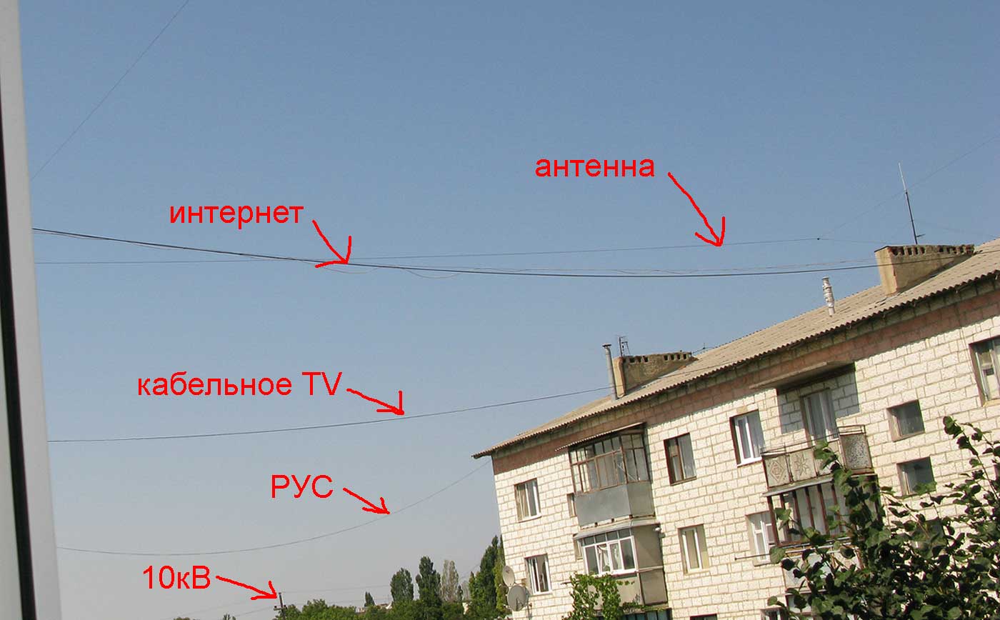 На фото антенна и её "окружение". Со всех сторон антенна окружена различными проволоками в которых шуруют различной частоты и уровней сигналы днём и ночью. Под самим полотном антенны шнурки кабельного TV, интернета и какой-то шнурок от РУСа, ну и ночью не дают жизни ДРЛ-ки освещения, которые регулярно "правят" из рогаток юноши. Думаю, не нужно выдавать подробности, по чьей рекомендации мальчишки "затачивают" свои рогатки?