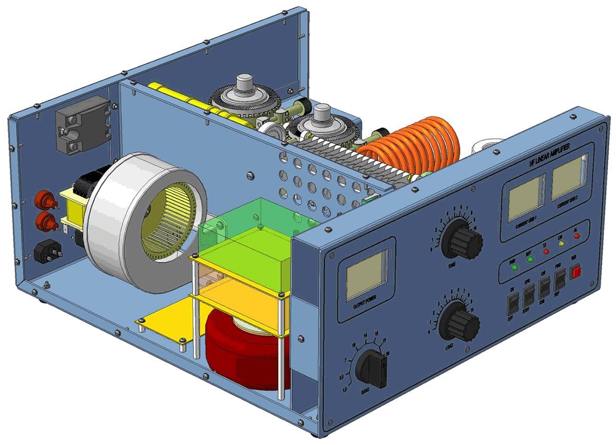 Не претендуя на наиболее оптимальный вариант расположения элементов в усилителе - ниже картинки-модели DN-1500.