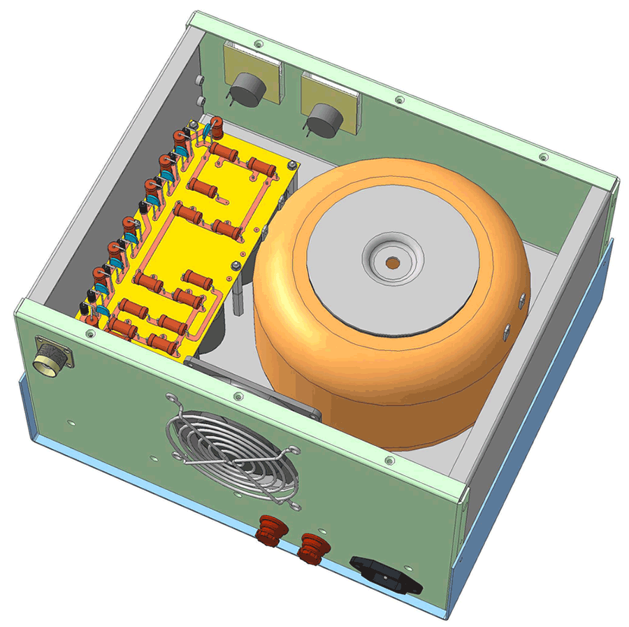 DN-700. Был интерес выполнить малогабаритный усилитель. Изготавливался из "того что было". Тем не менее - Рвых 900Вт - "поддымливали" катушка на 40м и сопротивление в антипаразитном дросселе.