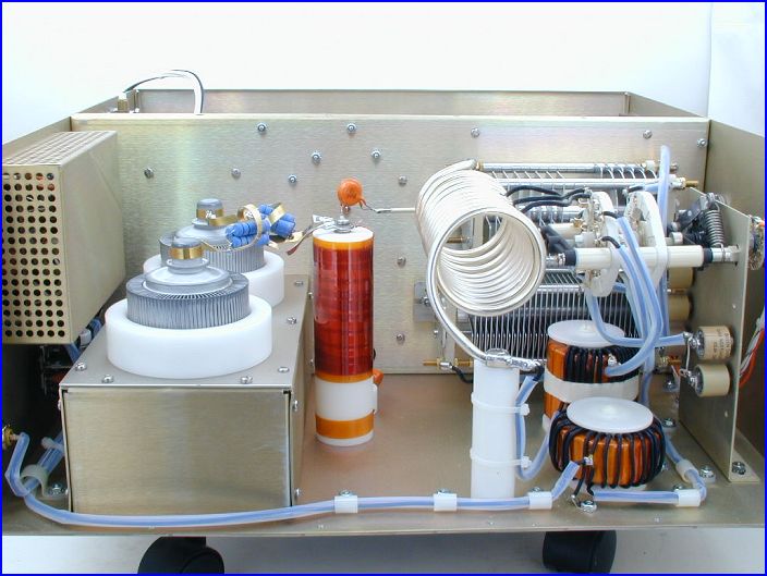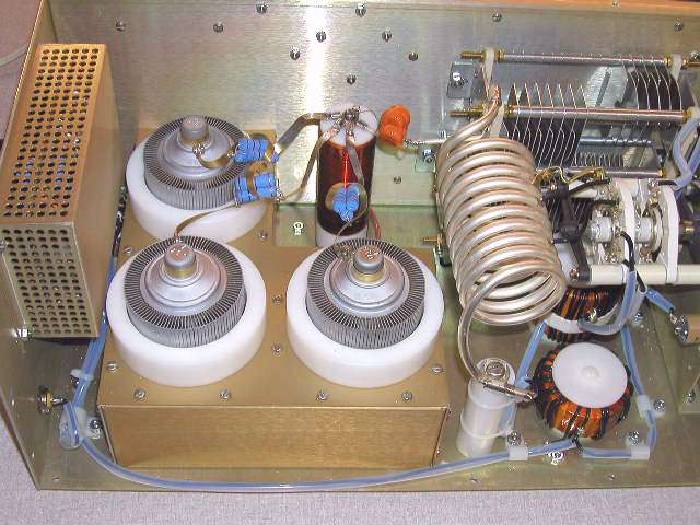 1.1хГУ-74Б - "классика" - возбуждение в первую сетку. Эксплуатировался тот усилитель у меня на коллективке UZ2FWQ и "насиловался" нещадно. Благо, мичманы в те годы могли за "всеобщий эквивалент" отсыпать пол мешка 74-тых, которые просто отстояли свои часы в технике. Анодное было под 3кВ, ток более 1А - Рвых однозначно более 1кВт. Измерять выходную мощность не было особенной заботы - сейчас уже и не вспомню точные цифры (почти 30 лет прошло!) - но ламповые вольтметры и эквивалент нагрузки на коллективке были. О ГУ-74Б после того усилителя у меня сложилось ооочень положительное мнение - особенно когда метка зеленого цвета на боку лампы вначале чернела, потом вообще испарялась, далее анод приобретал разноцветные сине-зелено-коричнево-желтые цвета "побежалости", но лампа всё равно работала. Фото того усилителя не сохранилось.