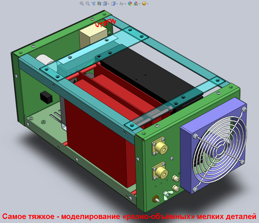 По транзисторному. Если нужен УМ для выезда, т.е. питание от аккума - при 13,8В оптимум до 300Вт. Дальше мощу наращивать - непропорционально шнурки все увеличиваются в толщине - токи там приличные. Если стационар - на сегодня вот тот вариант, что выше привёл фотку блока ШПУ+ФНЧ, с 50-ти вольтовыми транзисторами и вижу. Будут там или наши КТ980, или буржуи какие-нибудь - разница только в линейности АЧХ и КПД. По моще более 1кВт - пока ничего не прокомментирую, т.к. имею опыт до 1кВт на транзисторах. До 400Вт делал и на советских 27В транзисторах - без проблем всё работает. Преимущества транзисторного усилка: 1.Мгновенная готовность, 2.Отсутствие нагрева в режиме RX, 3.Автоматическое управление - что при настроенных антеннах главный плюс - крутить ничего не нужно - щёлкнул диапазон и поехало. 4.Безопасность. Не с "бухты-барахты" же все промышленные усилители до 3кВт сейчас только на транзисторах и делаются. Если по уму всё сделать - на столе будет только трансивер и СУ - кто может похвалиться настроенными антеннами на все диапазоны? Посему СУ не помешает, хотя и его можно выполнить "диапазонным" - т.е. на каждом диапазоне релюхами подключать Г-согласующее звено к антенне, чтобы компенсировать её реактивность. А усилитель убрать вообще в другое помещение - чтобы меньше облучаться, вентиляторы слушать... Релюшки хорошие китайцы уже научились делать - нет надобности за всяко-высоковольтно-В1В-В2В-вакуумно гоняться – посему любое по-бендезонное СУ влёгкую на них получается. По деньгам 500-600Вт на транзисторах будет дороже от 500-600Вт на старых ламповых запасах. За лампы то мы не платили полную их цену – или ворованные, или списанные военкой. А 4шт MRF150 - это минимум 180$ или 4шт КТ980 - минимум 140$. Но транзисторы менять не нужно - тоже не следует забывать. Ну и самоделковый УМ будет дешевше «фирменно-брендового». Итальяно-усилитто не беру во внимание, т.к. это всего лишь «кусок» от усилителя. В них нет фильтров, защит, БП. Хотя есть итальянские усилители и с ФНЧ, и с защитами – но цены на них уже «брендовые»…
