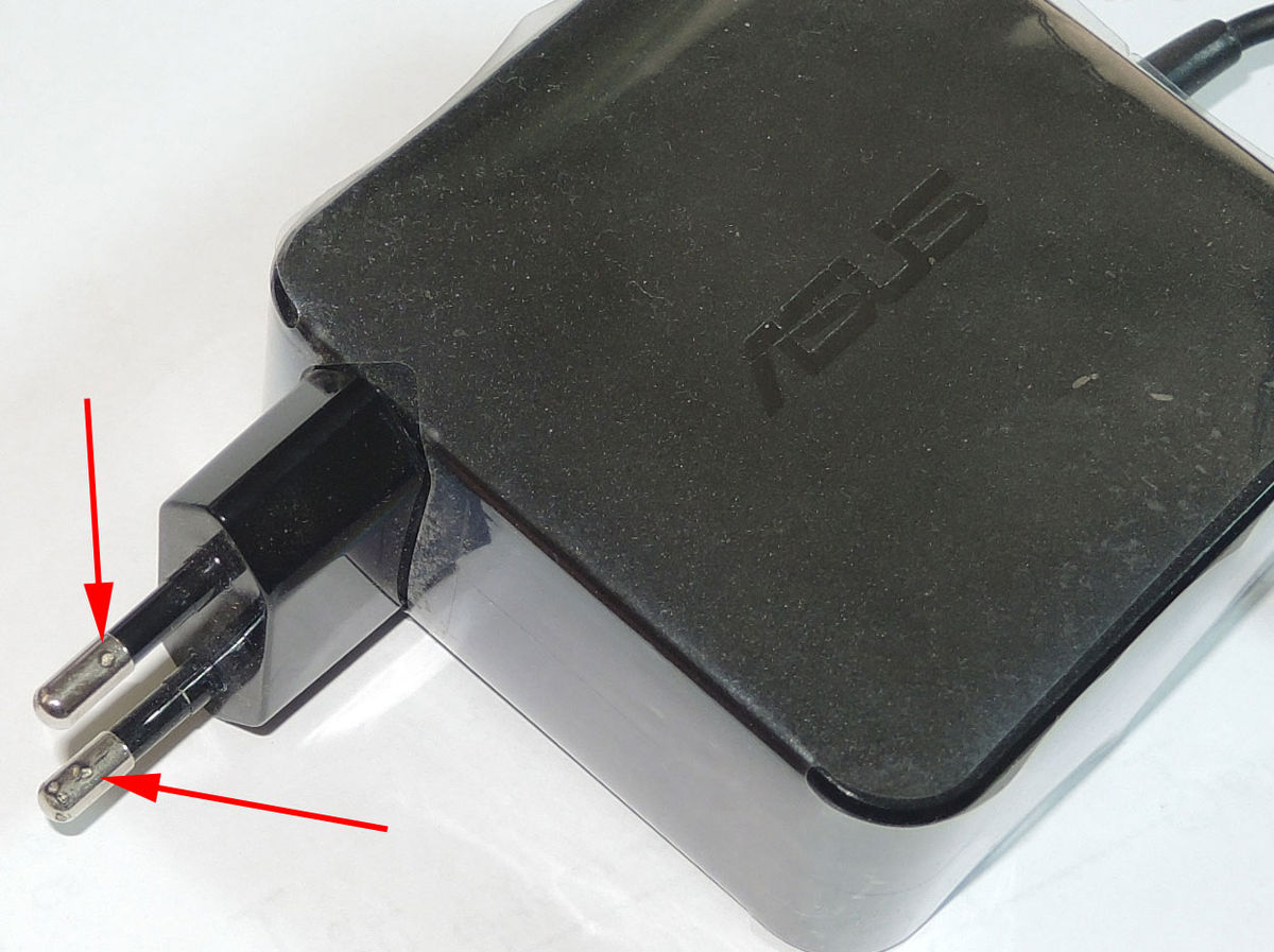 Для примера привожу вид вилки не самого "экономного адаптера". Это штатный "фирменный" блок питания, который идет с ноутбуком - какая там мощность - не нужно комментировать? Это достаточно новое изделие - нет и года редкой эксплуатации. Максимум десяток раз БП втыкался-вынимался из розетки. И что уже видим?