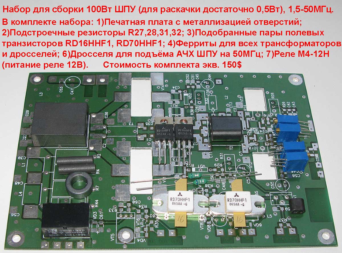 Мораль басни – ШПУ на RD70+RD16 неплохая и относительно дешёвая альтернатива иным версиям ШПУ, который должен работать вплоть до 70-80МГц. Конечно, стремление достичь максимальной широкополосности, добавляет трудностей с обеспечением устойчивости при различных нагрузках. Посему следует тщательно продумывать компоновку отсека усилителя и экранировку входных цепей.