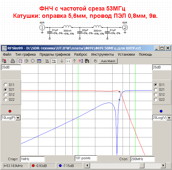 Элементы C39,L1,C48,L4,C56 – это ФНЧ с частотой среза около 35Мгц. Его применение даёт небольшой подъём АЧХ в районе 30МГц. Думаю, понятно, что для варианта ШПУ с верхней граничной частотой выше 30МГц потребуется или вообще не применять здесь ФНЧ, или пересчитать его номиналы.