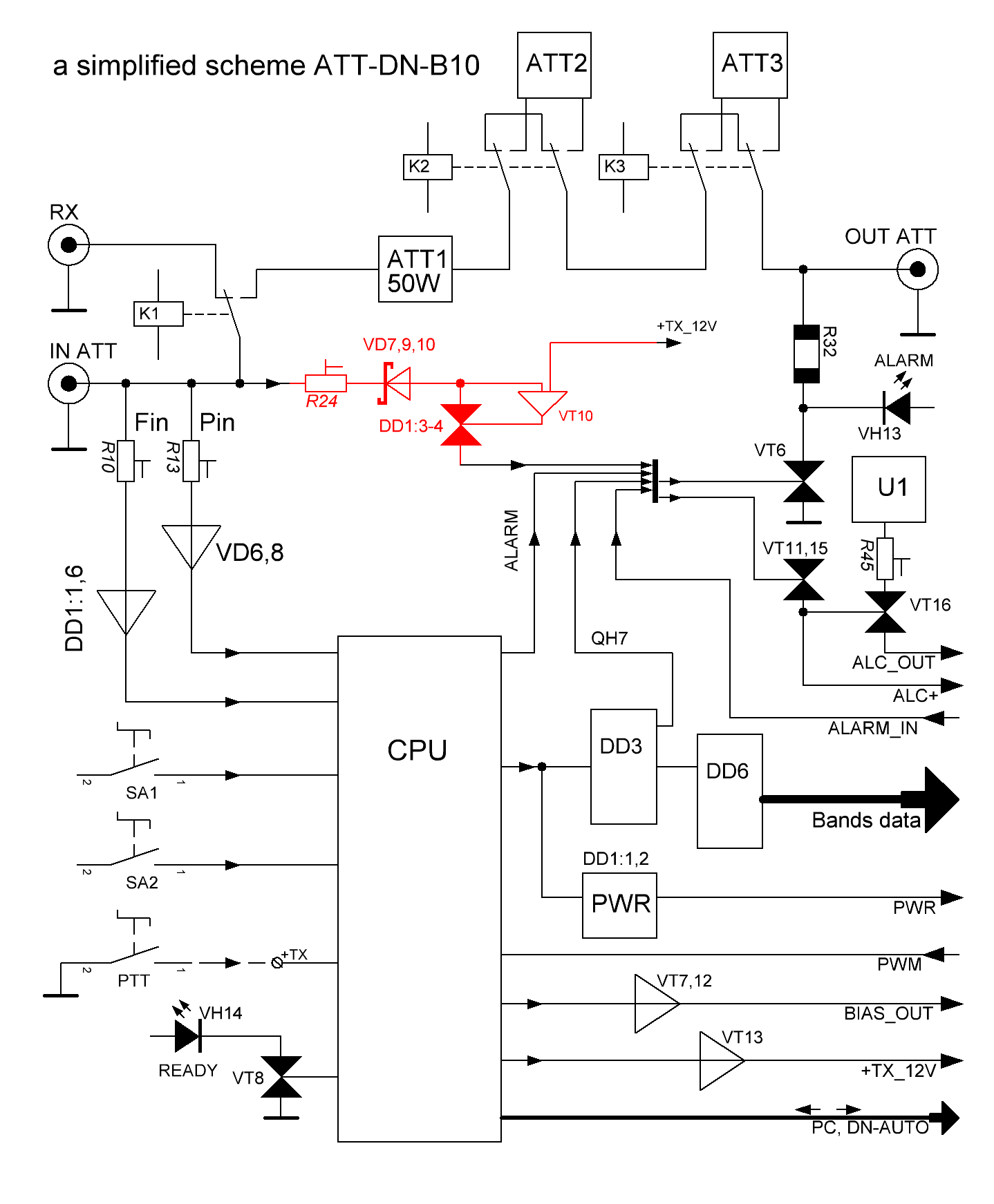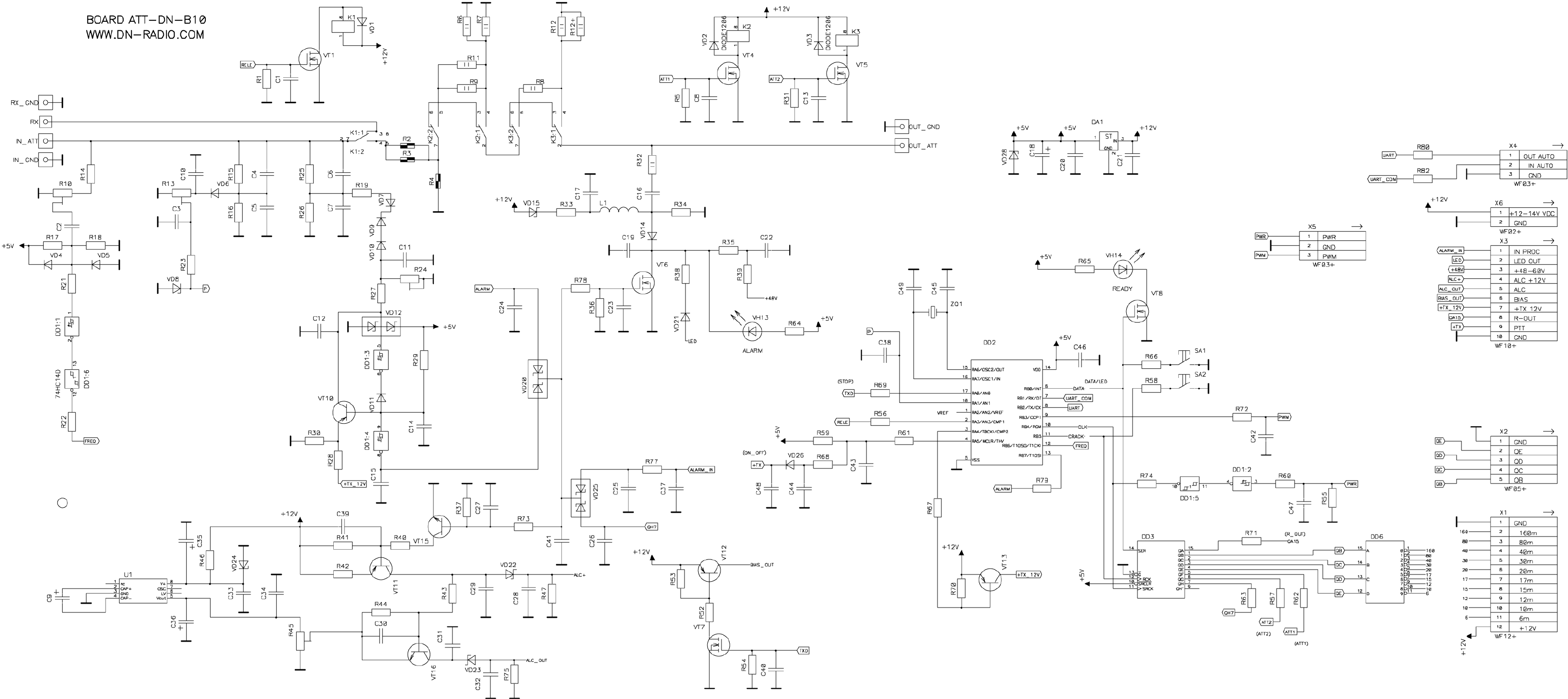 ATT-DN-B10 предназначено для автоматического определения диапазона, управления переключением режимов RX-TX, LPF фильтров, ATT, BIAS и защит в усилителе.