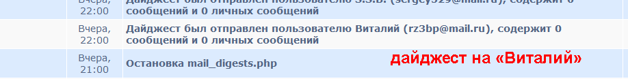 Виталий он и прилетает, т.к. вы о нём и не вспоминали, хотя если быть немного внимательнее - в шапке дайджеста указывается на какой НИК идёт рассылка, см -