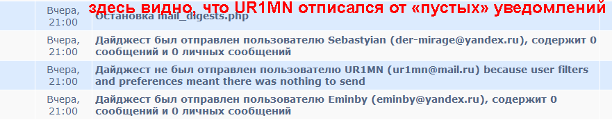 Vit51, конечно, дайджест не рассылается, т.к. вы их отписали. А на НИК