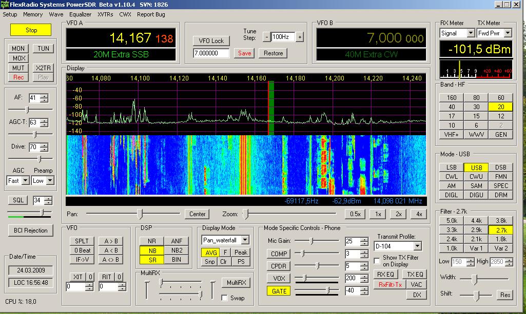 Есть небольшой вопрос, не уверен что он связан с освоением СДР, поэтому спрошу письмом. Собственно что интересует -случайно обратил внимание на то что на самом широком спектре при частоте дискретизации зв. карты 192кгц в PowerSDR в панораме идут очень ощутимые завалы по краям –децибел до 20.. причем что обидно не у самого края а плавно начинаясь практически из центра. Особенно заметно это на водопаде, на котором более-менее видны слабые станции.. а как раз водопад очень чувствителен к уровню сигнала. Результат смотрите на картинке -1- с письмом. Естественно я подумал что таково АЧХ зв. карты итд.. но пообщался с человеком у которого такая же точно зв. карта и выяснил что дело врядли в звуковухе –спектры собственных шумов чуть ли не копии.. а вот спектр в водопаде совсем другой, смотрите картинку -2- с письмом, -спектр намного равномернее и водопад соответственно рисует нормально. Из всего этого сделал вывод что дело в железке, т.е. в СДРе. Скажите на ваш взгляд действительно виноват СДР и можно ли это как то победить? Или проще плюнуть и не парится..?