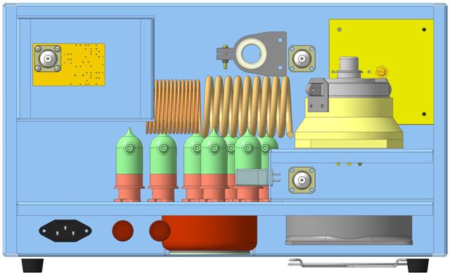 1.1хГУ-74Б - "классика" - возбуждение в первую сетку. Эксплуатировался тот усилитель у меня на коллективке UZ2FWQ и "насиловался" нещадно. Благо, мичманы в те годы могли за "всеобщий эквивалент" отсыпать пол мешка 74-тых, которые просто отстояли свои часы в технике. Анодное было под 3кВ, ток более 1А - Рвых однозначно более 1кВт. Измерять выходную мощность не было особенной заботы - сейчас уже и не вспомню точные цифры (почти 30 лет прошло!) - но ламповые вольтметры и эквивалент нагрузки на коллективке были. О ГУ-74Б после того усилителя у меня сложилось ооочень положительное мнение - особенно когда метка зеленого цвета на боку лампы вначале чернела, потом вообще испарялась, далее анод приобретал разноцветные сине-зелено-коричнево-желтые цвета "побежалости", но лампа всё равно работала. Фото того усилителя не сохранилось.