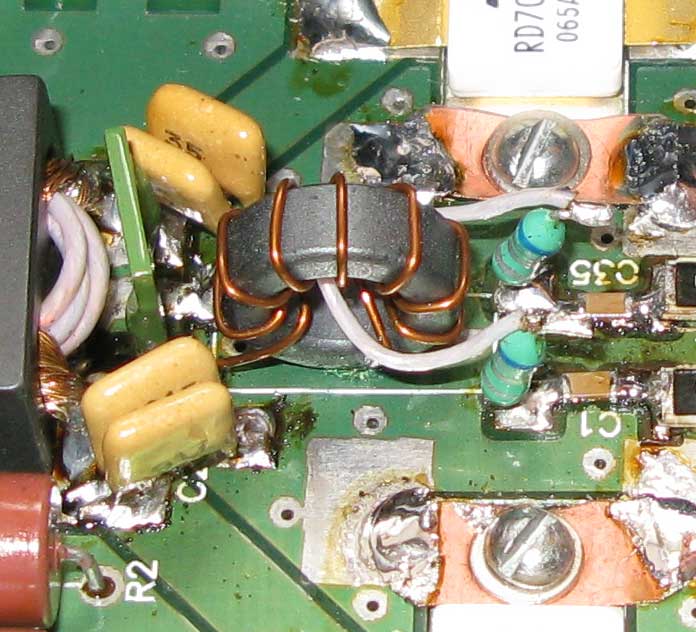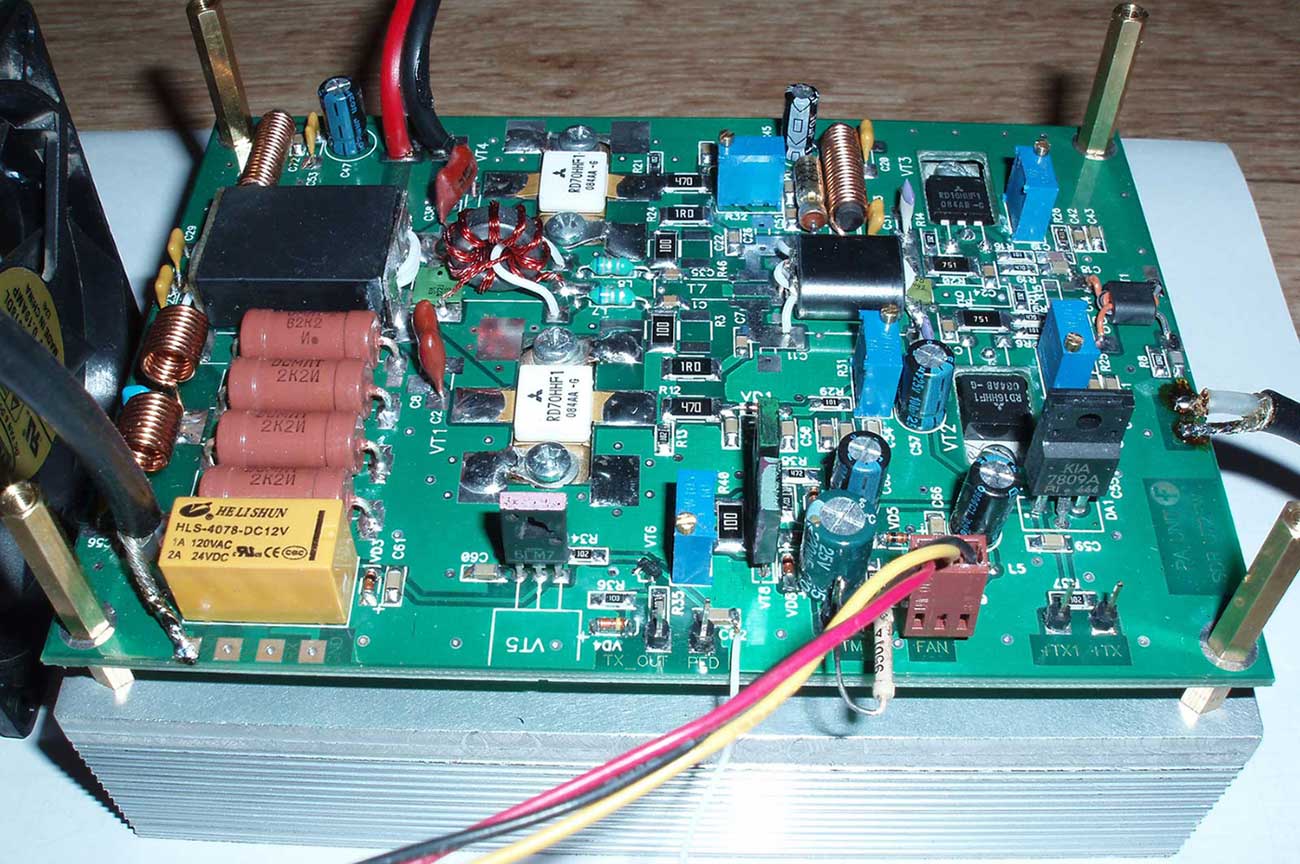 По теме, что "феррит тот же, витки те же" и т.д. - господа, каждый лепит из того, что есть - посему не факт, что у вас получится наиболее оптимальный вариант именно с указанными мной номиналами. Специально выкладываю фото рабочих плат, для того, чтобы были видны типы применяемых элементов. В мощных ШПУ уже не катят "абы какие" конденсаторы. Не любая керамика здесь будет качественно работать. И мощные ШПУ это не "микросхемные кубики", когда достаточно в плату впаять исправные микрухи и всё заработало. Повторяемость ШПУ будет высокой только в том случае, когда они выполняются из абсолютно одинаковых компонентов. И даже в этом случае иногда приходится корректировать частотозадающие элементы. Что же мы видим в реальной жизни? Достаточно почитать этот же форум - можно увидеть и какой "проволокой" бинокли мотают, и как паяют и т.д. и т.п. Посему и не следует надеяться на то, что если вы - "всё спаял по схеме" - этого будет достаточно, чтобы ШПУ получился. К тому же, RD70 свои будете применять - где гарантия, что они испечены в той же китайской "колхозной пекарне", где и те, которые у меня применяются?