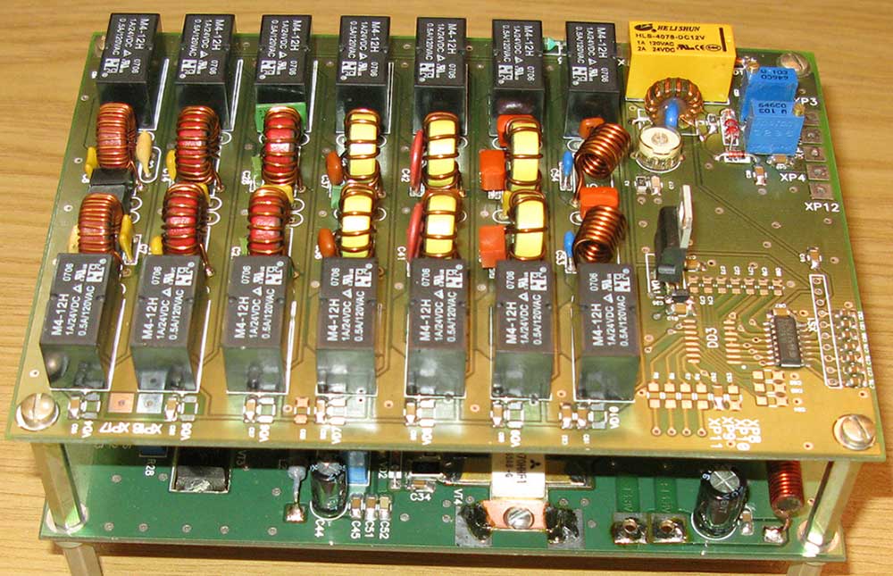 На элементах VT7,VT8 собран узел для управления работой вентилятора. Вентилятор подключаем к ХР15-ХР16, терморезистор (50-100к) к ХР13-ХР14. Логика работы такова – при переходе на ТХ – на вентилятор поступает полное напряжение питания через VT7. При нагревании радиатора (терморезистор имеет контакт с радиатором) напряжение плавно повышается на вентиляторе через VT8. Порог срабатывания выставляем при помощи R42. Резистором R10 ограничиваем максимальное напряжение на вентиляторе в режиме RX. Т.е. в режиме ТХ на вентилятор поступает полное напряжение, а в режиме RX напряжение будет зависеть от нагрева радиатора и ваших пожеланий, какими вы видите, чтобы шум вентилятора не досаждал при приёме. Ещё раз акцентирую внимание – напряжение на вентиляторе меняется плавно в зависимости от нагрева радиатора – соответственно и крутиться он будет с разной скоростью. Считаю такой вариант управления вентилятором наиболее оптимальным, нежели это делают во многих буржуинах, когда только два варианта – вентилятор вкл, и вентилятор выкл. при полном на нём напряжении питания.